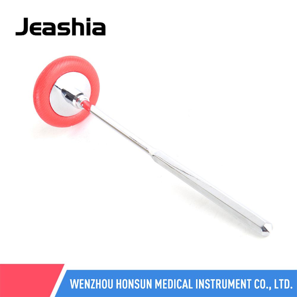 1. Bowling shaped head helps to relieve patient’s tension during diagnosis. 2. Frosted handle 3. Two striking surfaces