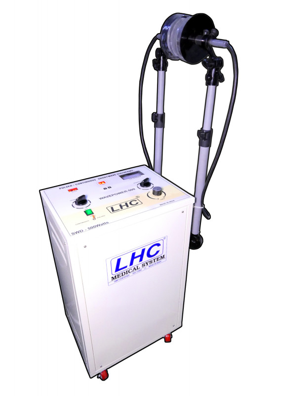 WAVEPOWER 500 is an advanced valve technology based on Continuous and Pulsed shortwave diathermy Machine. This machine has most advanced features to facilitate quick and effective treatment of the patient. WAVEPOWER 500 is heavy duty shortwave diathermy equipment can be used in hospitals and big clinics. It is mounted in castors to move from place to place. It has plastic & metal molded multi-position arms set for setting the treatment place without disturbing the patient. Digital timer for setting the treatment time and segment display help to see the exact voltage level.